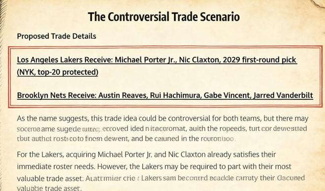 2换2交易方案出炉,场均15+4后卫加盟湖人,辅佐詹姆斯?