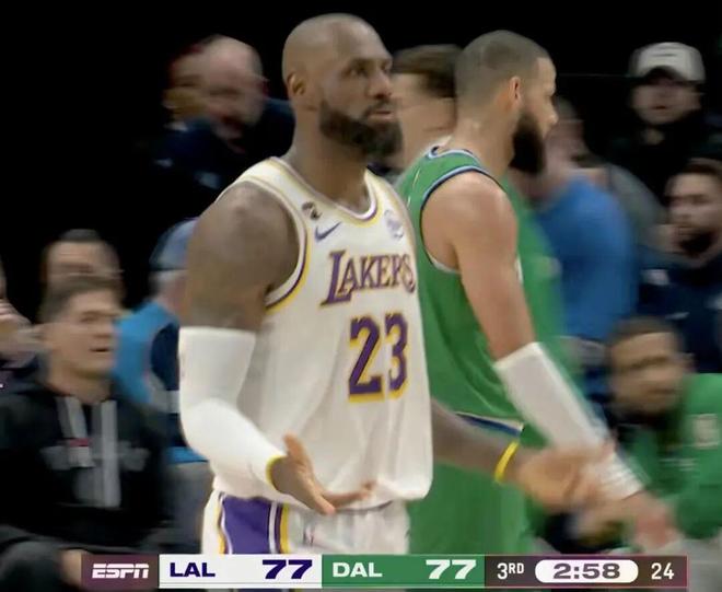 老詹喘着粗气,东契奇疯狂摊手