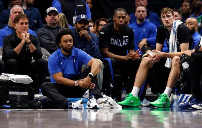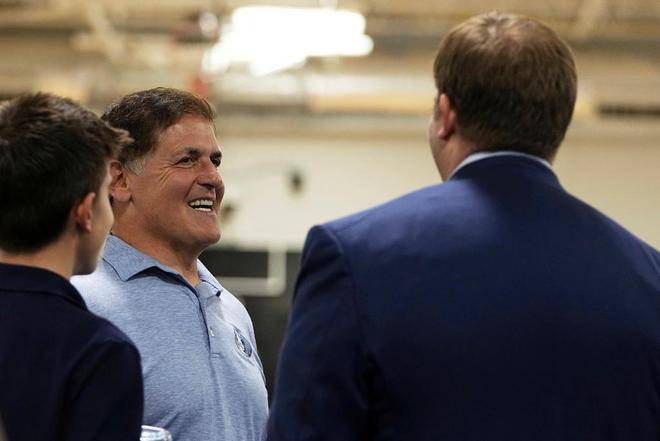 库班(左一)没有能够让东契奇成为下一个诺维茨基,这次他能让弗拉格(右一)在达拉斯慢慢成长起来吗?