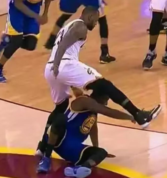 很多人觉得詹姆斯耍阴谋心机,故意从格林头上跨过去,然后被格林击打裆部害他被禁赛,最终坑了勇士的冠军,这是詹皇的小伎俩。也有人觉得格林戳詹姆斯的眼睛是报复,但是现在看起来他俩的关系好着呢,称兄道弟都是铁哥们。