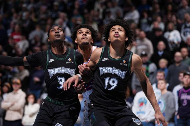 森林狼:爱德华兹28分9板3助2断2帽、麦克丹尼尔斯19分6板2助3帽、兰德尔18分3板3助、多森姆12分5板4助、迪文琴佐11分6板3助。