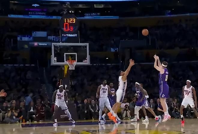 • 詹姆斯17+10创NBA历史第1神迹,湖人逆转76人!里夫斯35+6创纪录